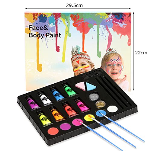 Joyeee 14 Colori Face Body Painting Kit Vernice Fluorescente Colorato Neon Lavabili Kit Trucco per Bambini Carnevale di Halloween Abito in Maschera Partito Natale Pasquale UV Glow Palette di Bellezza