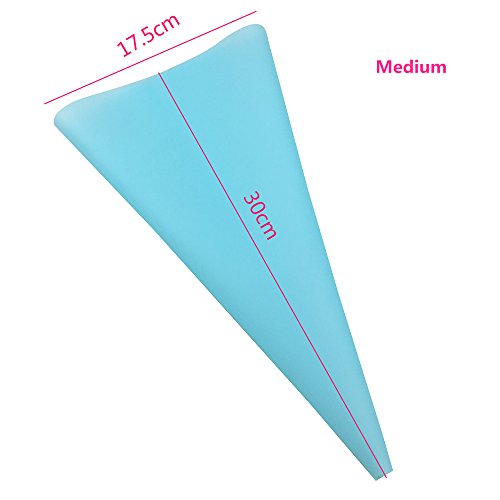 Materiale sicuro e durevole -- Questi sacchetti della pasticceria sono fatti del silicone commestibile del grado che è pulito e sano e più spesso del mercato non è facile da rompersi o spaccarsi. Queste tasche sono molto più forti e più estensibile di sacchetti di plastica ordinaria. Queste tasche sono solide e non strappare quando viene utilizzato.