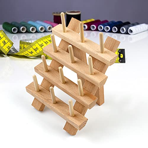 Joyeee Portabottiglie in legno per 12 bobine, piccolo portaoggetti pieghevole per cucito, organizer per fili da cucito, trapuntatura per adulti, idee regalo di compleanno per donne