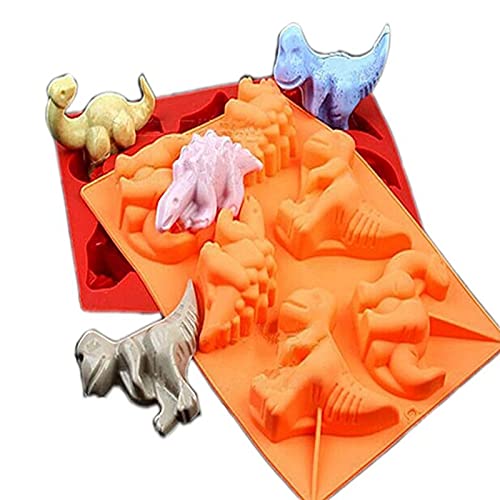 Joyeee Stampo di dinosauri a forma di cartone animato, confezione da 2 stampi in silicone antiaderenti per bambini, compleanni, torte e sapone fai da te decorazioni artigianali per Natale Capodanno