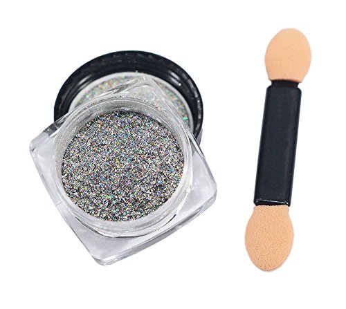 Joyeee Unghia Arte Magia Super Splendente Specchio Cromo Chiodo Glitter in Polvere per Fai da te Chiodo Trucco Unghie Suggerimenti Decorazione con Bastoncino di Spugna - Camaleonte del Arcobaleno