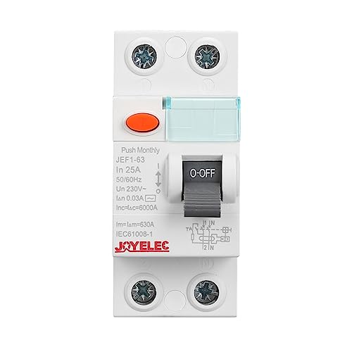 JOYELEC Interruttore Magnetotermico Differenziale,Protezione di perdita di circuito, protezione di cortocircuito,protezione da sovraccarico,1P+N,6kA,Idn=0.03A, In=25A,AC230V