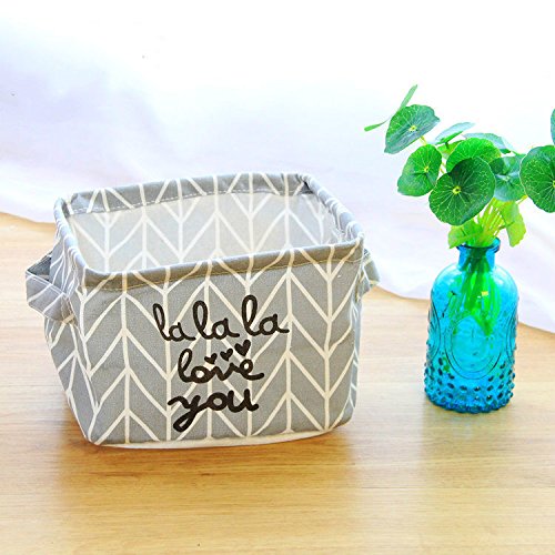 Joyfeel buy, 1 cestino portaoggetti pieghevole in lino e cotone, impermeabile, con 2 manici, grigio, 20 x 16 x 16 cm
