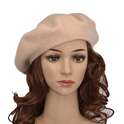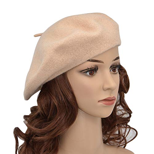 JOYHY Donna Lana Solido Berretto Francese Cappello Beanie Beige