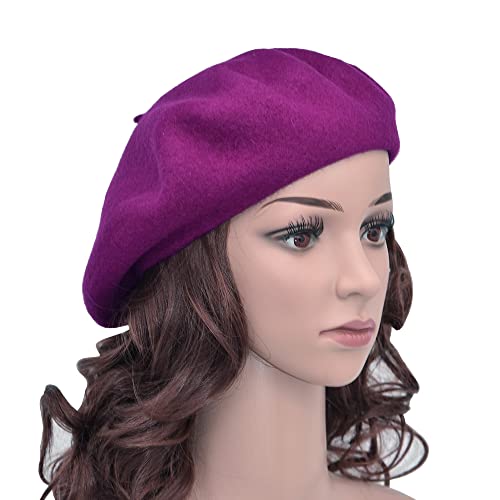 JOYHY Donna Lana Solido Berretto Francese Cappello Beanie Viola Scuro