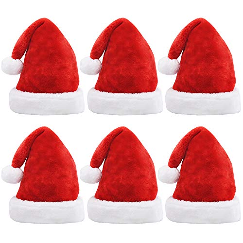 JOYIN 6 cappelli di Babbo Natale deluxe con velluto rosso e finiture in peluche, cappelli di Natale sfuso, bomboniere natalizie e forniture per feste per bambini e adulti