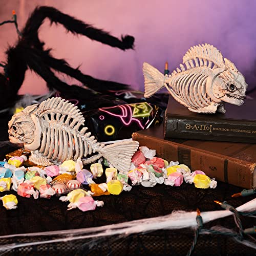 JOYIN 2 Pezzi Decorazione Halloween 24cm Scheletro Pose N Stay Scheletro Pesce di plastica con articolazioni mobili Puntelli Scheletro all'aperto o al Coperto Scena spettrale Bomboniere