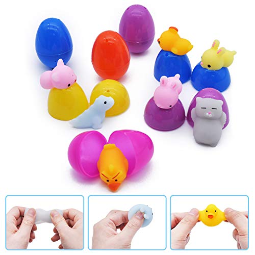 JOYIN 48 pezzi di uova plastica di Pasqua preriempite con giocattoli morbidi da stringere per allievare lo stress per Pasqua bomboniere