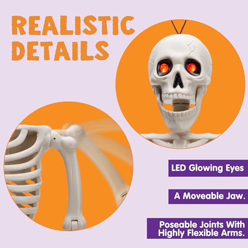 JOYIN 24 Pollici Scheletro di Halloween Ossa di Plastica Umane per Tutto il Corpo con Occhi Luminosi a LED e Giunti Posabili per la Decorazione della Casa Stregata o del Cimitero