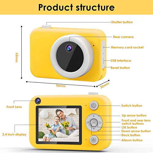 【Fotocamera per bambini multifunzione】 Le fotocamere digitali per bambini hanno le funzioni di scattare foto fronte e retro, continue e time-lapse, in grado di soddisfare varie esigenze in diverse situazioni. La fotocamera digitale per bambini offre ai bambini una divertente introduzione alla fotografia. Lascia che la tua piccola esplori il suo lato creativo con la videocamera per bambini!
