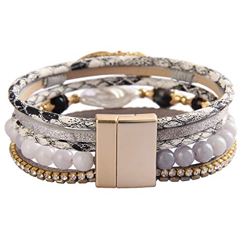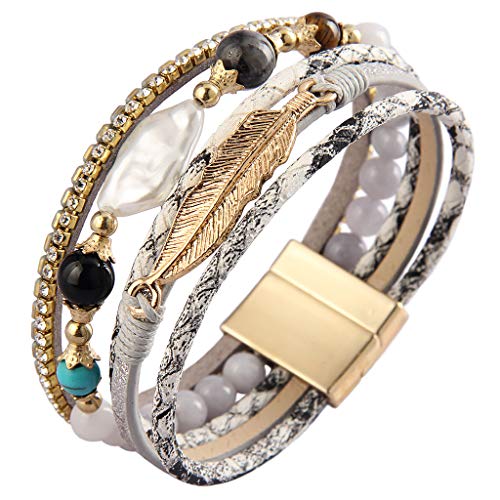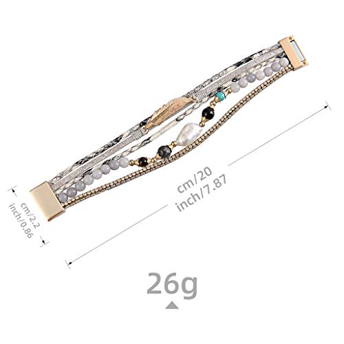 ♥ DESIGN UNICO ♥ Questo bracciale da donna in pelle presenta cordoncino di cuoio multistrato e combinazione con pietre di semi naturali. Una sicura chiusura magnetica forte lucidata funge da punto focale e fornisce il bracciale avvolgente in pelle per un facile accensione e spegnimento