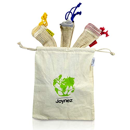 Joynez - Sacchetti riutilizzabili per Frutta e Verdura, in Cotone Biologico, con Sacchetto per Il Pane, Ungebleichte Naturbaumwolle, Set da 4