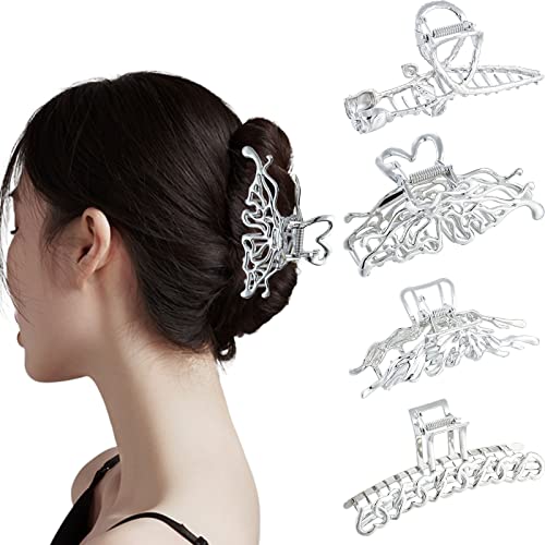 Joyoldelf Fermagli per capelli, set di clip per capelli argentate, per donne e ragazze, accessori per capelli, artigli antiscivolo per capelli (4 pezzi)