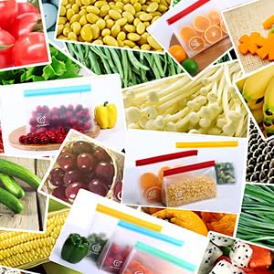 ⭐【Design semplice e unico】I sacchetti riutilizzabili frutta sono di diversi colori, semplici ma eleganti. Anide e comprimere piatto per una comoda conservazione, sacchetti congelare riutilizzabili design trasparente consente una rapida occhiata al contenuto all'interno, permettendoti di trovare rapidamente ciò che desideri. Il sacchetto alimentare in silicone ha una capacità maggiore rispetto al precedente sacchetto alimentare PEVA, che è più conveniente per asciugare dopo il lavaggio.