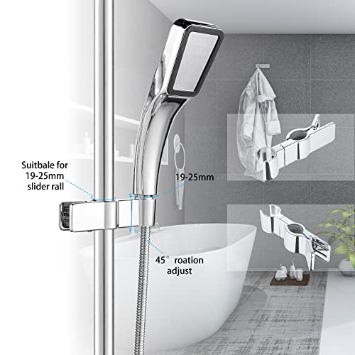 Joyoldelf Supporto per soffione doccia, supporto doccetta regolabile, girevole a 45°, supporto doccetta per binario doccia da 18 a 25 mm di diametro, supporto doccia ABS cromato (argento)