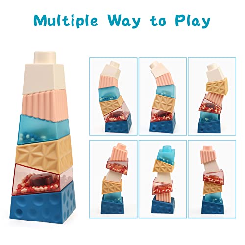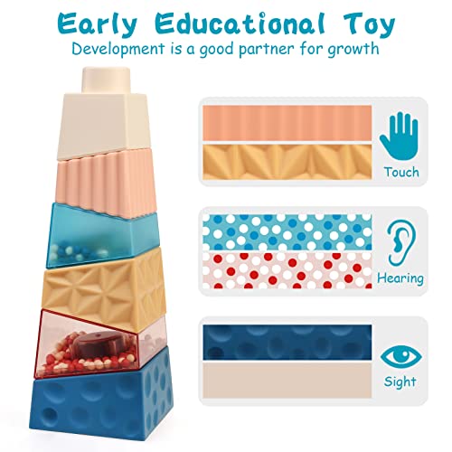 JoyPlus Giocattoli Impilabili con Sonaglio, Squeeze Dentizione Giocattolo per Bambini, Torre di impilamento per impilamento, Cubi impilabili Cerchio di Nidificazione, Regalo per Bambini per 0-18 Mesi