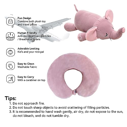 JOYRAVO Cuscino da viaggio per bambini, cuscino per il collo convertibile 2 in 1, morbido cuscino a forma di U, comodo compagno di viaggio per dormire e giocare - Elefante