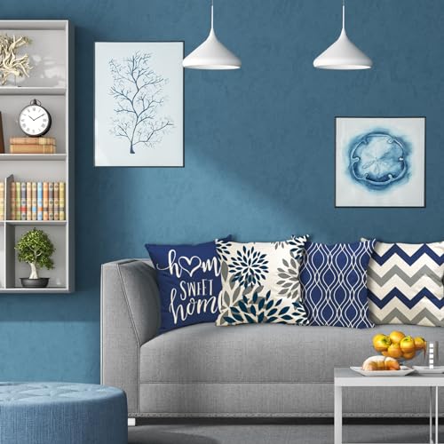 Joyshare 40x40 cm Home Decor Cushion Covers Set of 4, Linen Cushion Covers with Zipper Blue