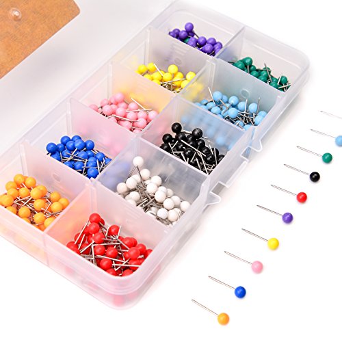 10 chiodini di mappa colore diverso, teste tonde in plastica e punti dell'ago di acciaio