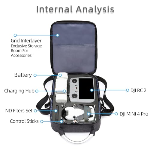 Custodia mini 4 Pro: appositamente progettata per DJI mini 4 Pro (compatibile con mini 4 Pro RC e RC N1), mantiene il tuo drone mini 4 Pro e gli accessori organizzati, senza polvere e protetti all'interno di questa custodia.