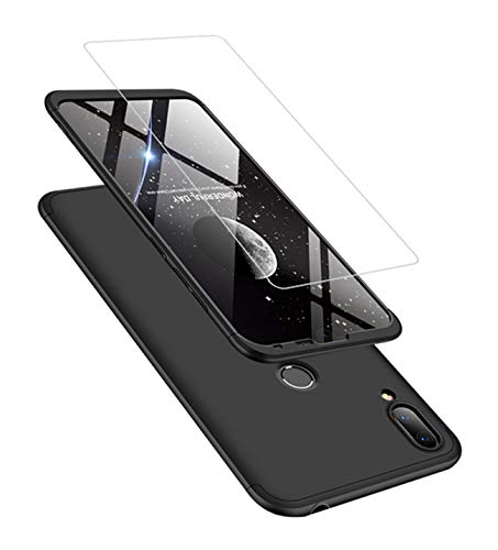 JOYTAG Compatibile con Huawei Y7 2019 + pellicola in vetro temperato 360 gradi All Inclusive 3 in 1 PC Bumper-Nero