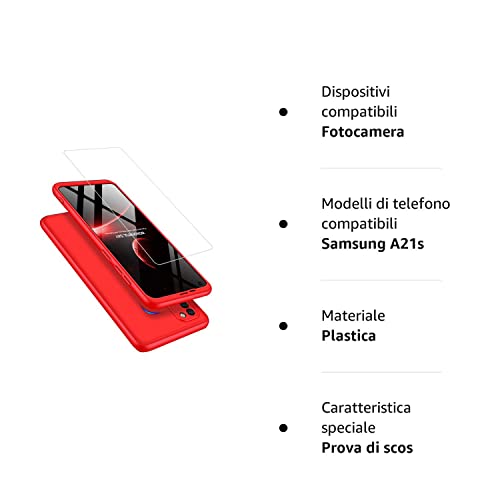 JOYTAG Cover Compatibile Samsung A21S, Custodia + vetro temperato Protezione a 360°PC hard case-Rosso