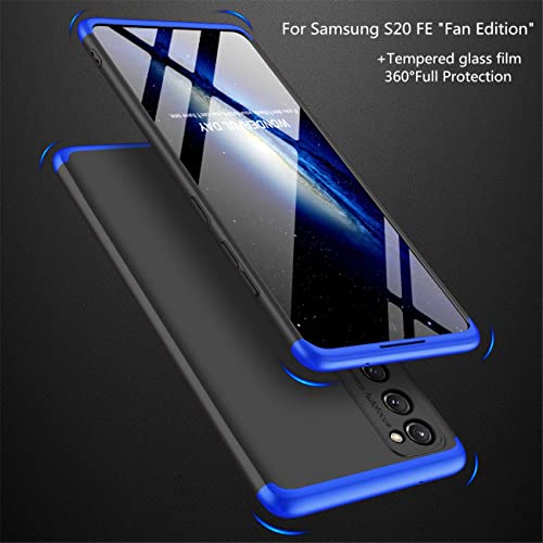JOYTAG Cover Compatibile Samsung S20 FE"Fan Edition", Custodia + vetro temperato Protezione a 360°PC hard case-Blu Nero