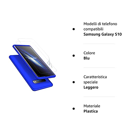 Cover Samsung S10 + pellicola protettiva per schermo a 360°. Protezione completa del corpo del dispositivo. Da utilizzare come protezione 3 in 1 dall'alto al basso e dotata di fibbia, custodia elegante, cover per telefono compatta, ultra-sottile e leggera. Ogni custodia è dotata di una pellicola in vetro temperato separata, per fornire una protezione completa per Samsung S10.