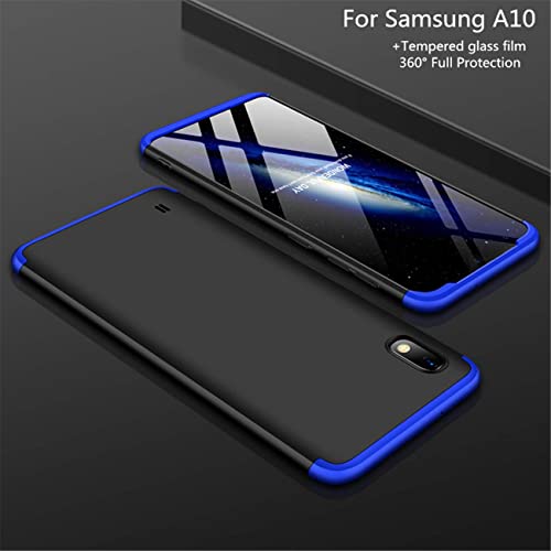 Joytag Cover compatibile per Samsung A10 + pellicola in vetro temperato a 360 gradi tutto incluso 3 in 1 PC Bumper-Blu Nero