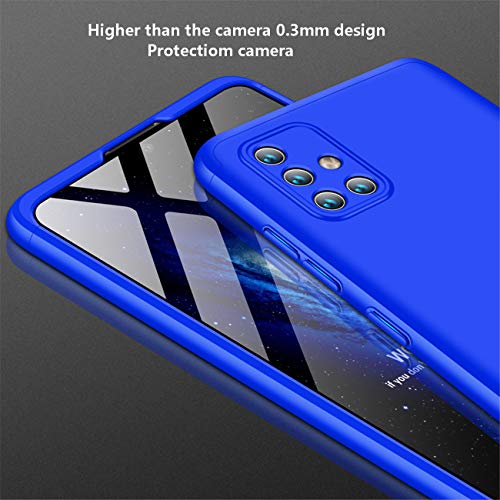 Joytag Cover compatibile per Samsung A71 + pellicola in vetro temperato a 360 gradi, tutto incluso 3 in 1 PC Bumper-Blu