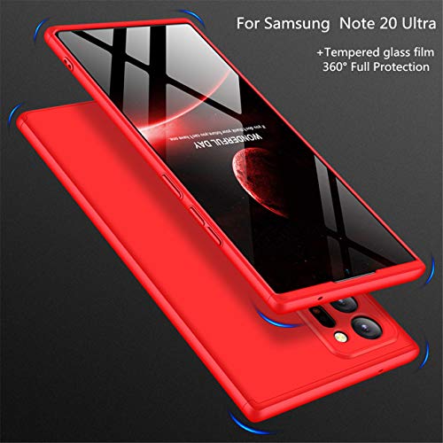 JOYTAG Cover Compatibile Samsung Note 20 Ultra, Custodia + Proteggi schermo[2 Packs] a 360°PC hard case-Rosso