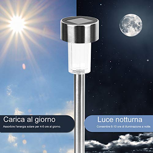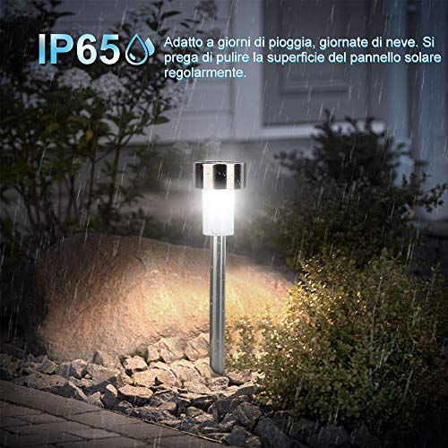 JOYTUTUS Luce Solare da Giardino, 12 Pack IP65 in Acciaio Inox Impermeabile a Risparmio Energetico Luce Solare LED Esterno per Patio Prato Giardino Percorso Passaggio Pedonale Sentieri
