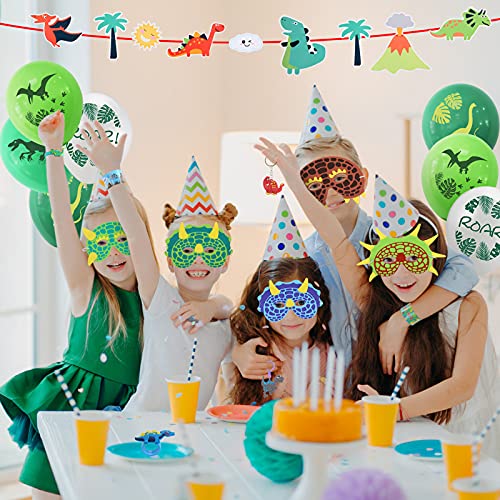 Il set include: un totale di 63 dinosauri contiene12 maschere di dinosauro, 12 portachiavi di dinosauro, 12 palloncini di dinosauro, 8 tatuaggi di dinosauro, 6 braccialetti di dinosauro, 6 braccialetti di schiaffo, 6 anelli di dinosauro e 1 banner di dinosauro. Stile ricco e nuovo fa Contento i tuoi figli.
