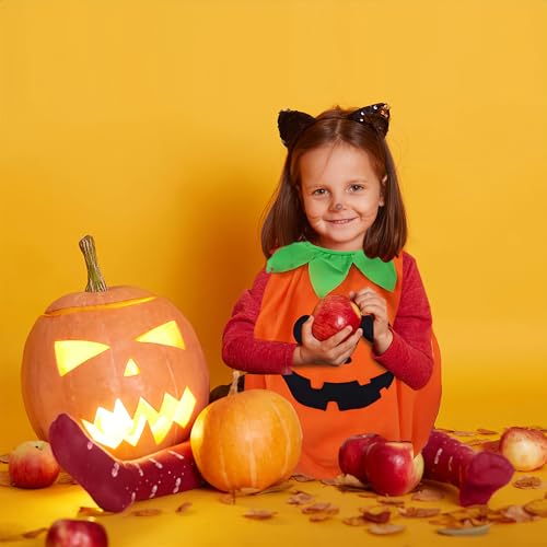 JOYUE Costume da Zucca per Bambini Costume di Halloween da Zucca, Costume da Zucca Unisex Pumpkin Costume con Cappello e Calzino, Costumi di Zucca di Carnevale Bambino, Adatto per 2-6 Anni (110)