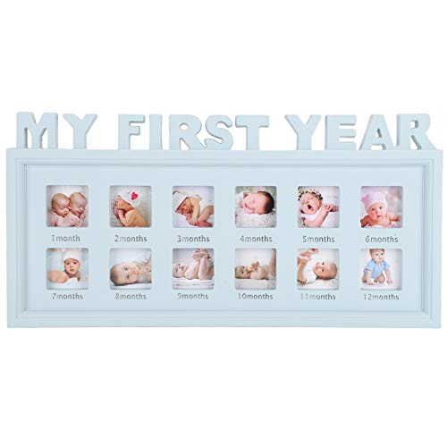 Joyzan Cornice per Foto Neonato, 12 Mesi Cornici Neonati Display Stile Europeo Visualizza Decorazioni da Parete Famiglia con Collage di Foto per Bambini Parete da Tavolo Regali Ragazzi Ragazze Blu
