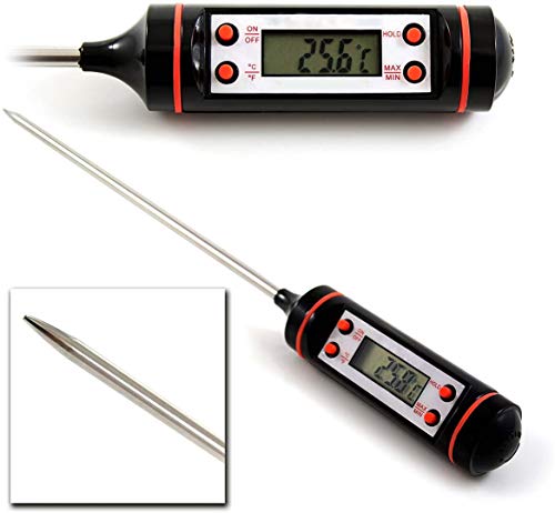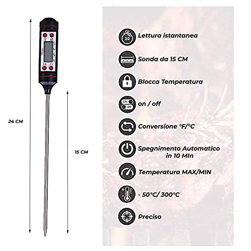 ERGONOMICO E VERSATILE : Perfetto per cucinare le ricette più difficili senza alcuno sforzo. Non preoccuparti di scottarti misurando la temperatura dell'olio bollente perché grazie alla comoda sonda in acciaio INOX di 15 Cm, potrai farlo in totale sicurezza. Bistecche, manzo, arrosto, fritti, cioccolato e altri alimenti e liquidi caldi non hanno più segreti! Utile per pasticceria e dolci, sicuro per la temperatura del latte del tuo neonato. Il più affidabile tra gli accessori cucina