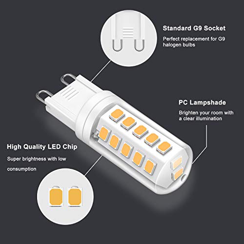 Jpodream G9 Lampadina LED 5W,32 * 2835SMD Risparmio Energetico Lampada, 2700K Bianco Caldo, Equivalenti a 40W Lampadine Alogene, Fasci larghi 360 °, 400lm, AC220-240V,Confezione da 10