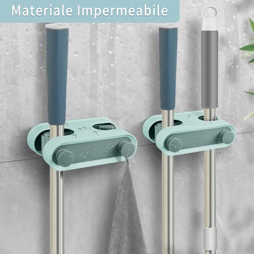 【Risparmio di Spazio】Il supporto per mocio è di piccole dimensioni e forte struttura organizzativa, che può risparmiare spazio a casa. Ti aiuta facilmente a organizzare i tuoi strumenti di pulizia, puoi appendere scope, mocio, rastrelli, spazzole, fazzoletti, guanti, ombrelli e altro per massimizzare lo spazio e mantenere la tua casa in ordine. Perfetto per l'uso in cucine, bagni, lavanderie, garage, scale, giardini e altro ancora, è un accessorio casa arredamento ideale.