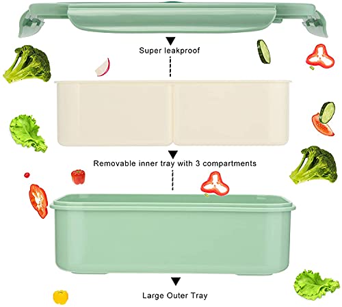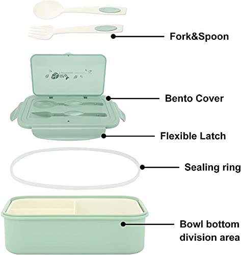 Jrancc Scatole bento Lunch Box 1400ML Kids bento box 3 Scomparti con Cucchiaio e Forchetta per Snack Scolastici per Bambini e Adulti