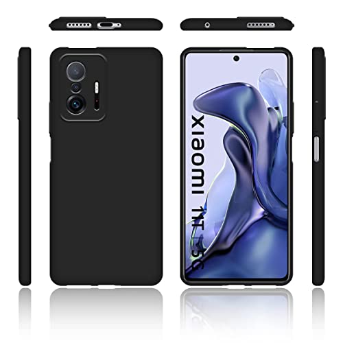 Jrester Cover Compatibile con Xiaomi 11T 5G / 11T PRO 5G con 3 Pezzi Vetro Temperato Pellicola Protettiva, Nero Morbido Silicone Liquido Protettiva Custodia per Xiaomi 11T 5G / 11T PRO 5G