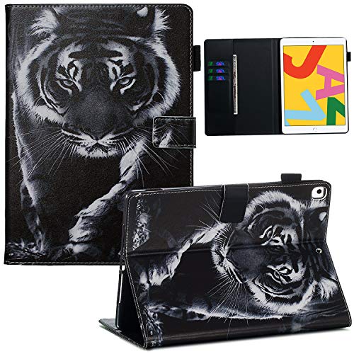 JRIANY Custodia per iPad 10.2 2020 / 2019 (8th / 7th Generation) Cover Portafogli in Pelle PU Tablet Protettiva Case Libro Folio Flip Cover con Porta Carte e Supporto Auto Sonno/Sveglia, Tigre