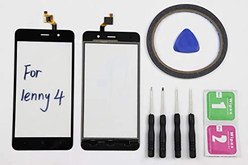 JRLinco per Wiko Lenny 4 Schermo di Vetro, Parte di Ricambio Display Touchscreen(Senza LCD)per Wiko Lenny 4 Nero+Attrezzi & Bi-Adesivo + Pacchetto Pulizia con