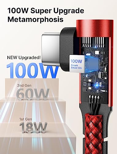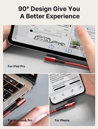 JSAUX, cavo USB C a USB C, angolo retto, 90 gradi, 2 m, 2 p, tipo C, 60 W, PD, ricarica rapida, compatibile con Google Pixel 3 2 XL, Samsung Galaxy Note 10 S9 S8 S10, MacBook Air, iPad Pro 2018, rosso