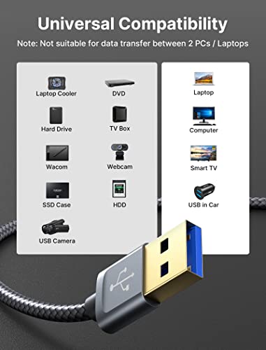 【Trasmissione dati ad altissima velocità】: il cavo JSAUX USB 3.0 A maschio-maschio supporta la trasmissione di dati ad alte velocità fino a 5 Gbps e la sua velocità di trasmissione è 10 volte più veloce del cavo USB 2.0. Il cavo USB-A 3.0 offre prestazioni eccellenti e una trasmissione dei dati senza errori. Retrocompatibile con supporto per dispositivi standard USB 2.0 e USB 1.1.