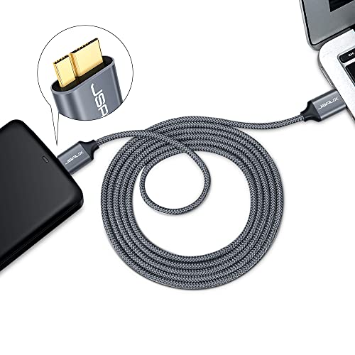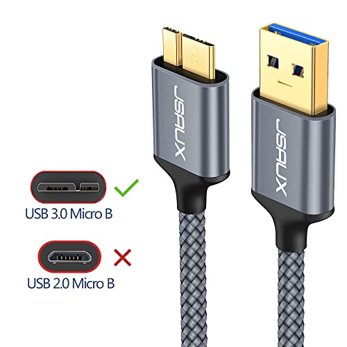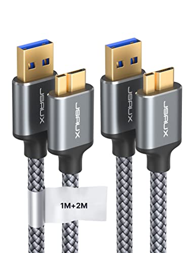 JSAUX Cavo Micro USB 3.0, Cavo USB A a Micro B [2 pezzi, 1m+2m] Cavo per Disco Rigido Esterno Cavo Intrecciato in Nylon per Samsung Galaxy S5, Note 3, Disco Rigido Seagate, Disco Rigido WD-Grigio