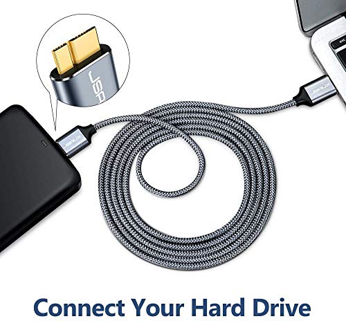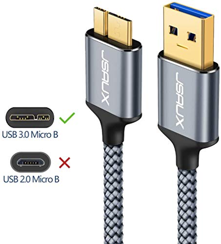 JSAUX Cavo Micro USB 3.0, Cavo USB A a Micro B [2 pezzi, 1m+2m] Cavo per Disco Rigido Esterno Cavo Intrecciato in Nylon per Samsung Galaxy S5, Note 3, Disco Rigido Seagate, Disco Rigido WD-Grigio
