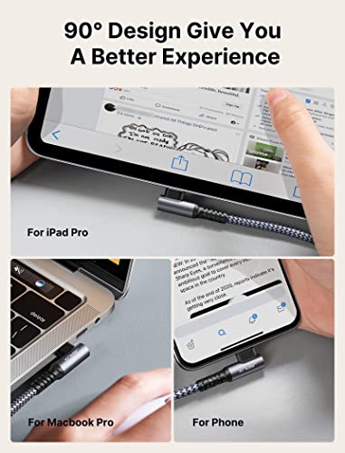 【Assicurazione di altissima qualità】: Cavo USB-C a USB-C ad angolo retto rinforzato con connettore in alluminio 3D migliorato e tecnologia di saldatura laser esclusiva, che garantisce che la parte metallica non si rompa. Il cavo intrecciato in nylon premium aggiunge una maggiore durata e assenza di grovigli. Lo speciale design dello scarico della tensione può resistere a oltre 10000 prove di piegatura.