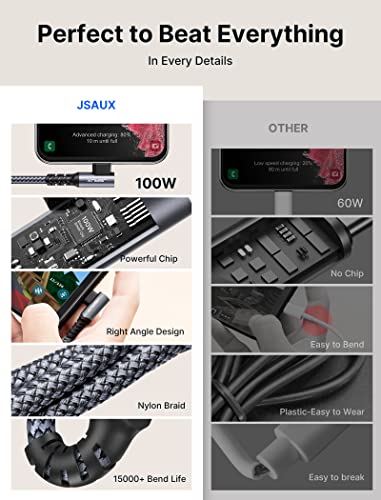 JSAUX Cavo da USB C a USB C [2pcs, 2M] 60W USB C a cavo di ricarica di tipo C USB C ad angolo retto 90 gradi compatibile con Samsung Galaxy S22/S21-Grigio