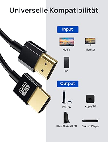 JSAUX Cavo HDMI 2.1 8 K, 1 m, 48 Gbps Ultra High Speed Slim HDMI, 4 K @120 Hz, 8 K@60 Hz, 7680p, HDCP 2.2 e 2.3, HDR 10, Ethernet, eARC, Dolby compatibile con monitor UHD TV PC PS5 PS4 Blu-ray