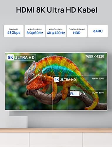 Compatibilità completa: i cavi HDMI maschio a maschio supportano video 8K @ 60Hz (4:4), retrocompatibile con 4K (2160p) @ 120Hz (4:4), 4K @ 60Hz, 2K (1440p) @165Hz, 2K @ 60Hz, 1080p e 720p. Versione precedente di cavi HDMI (2.0b/2.0a/1.4/1.3/1.2/1.1)